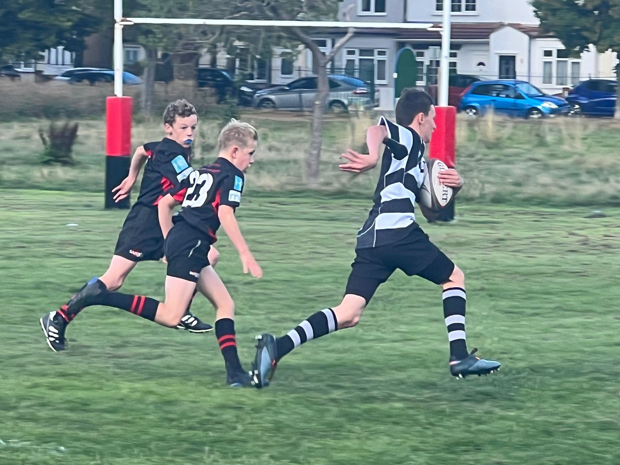 Thomas Rumsby on his way to the try line for the Under 13s